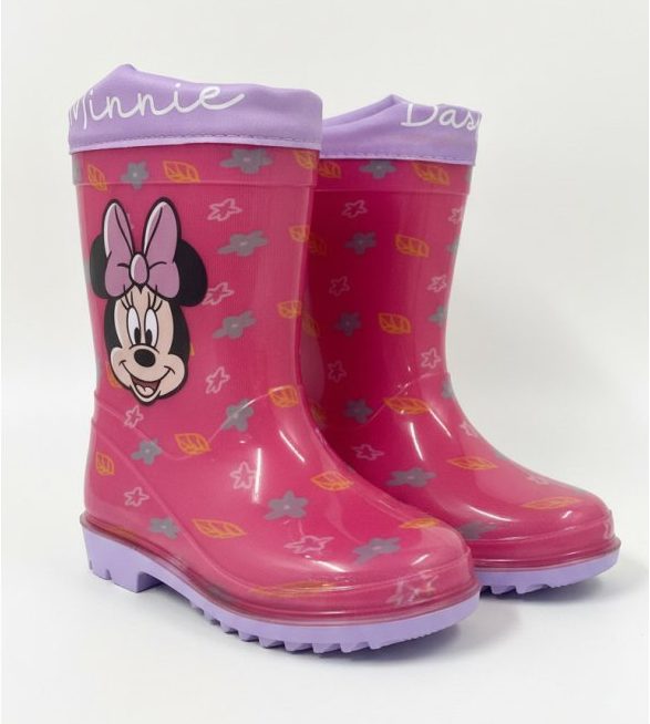 Botas de agua de la colección Disney con Minnie Mouse en color rosa. De robusta construcción que asegura resistencia al agua y diseño divertido que garantiza que se conviertan en las favoritas de cualquier niña. Un accesorio imprescindible que combina funcionalidad con la fantasía de Disney. Disponible números 22/23 y 26/27.