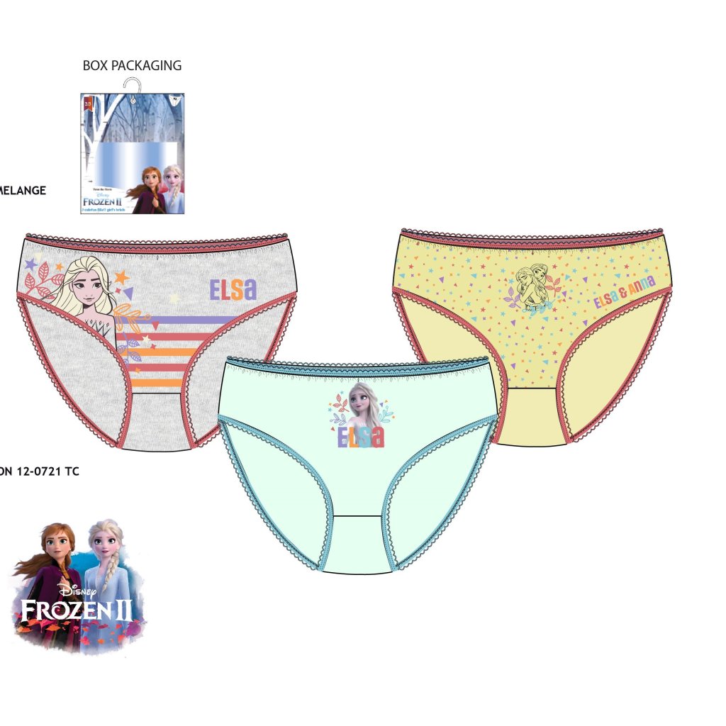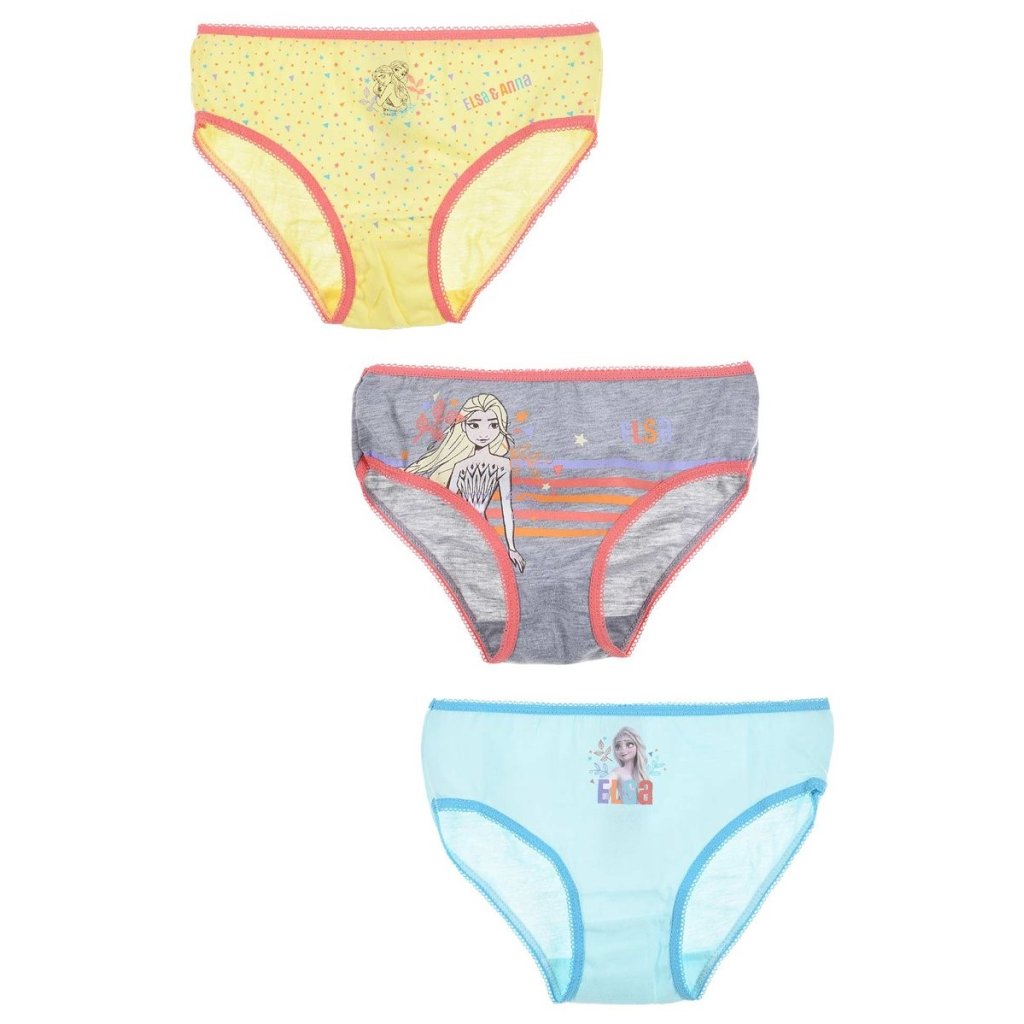 • Incluye tres braguitas con diseños variados de Elsa y Anna de Frozen.