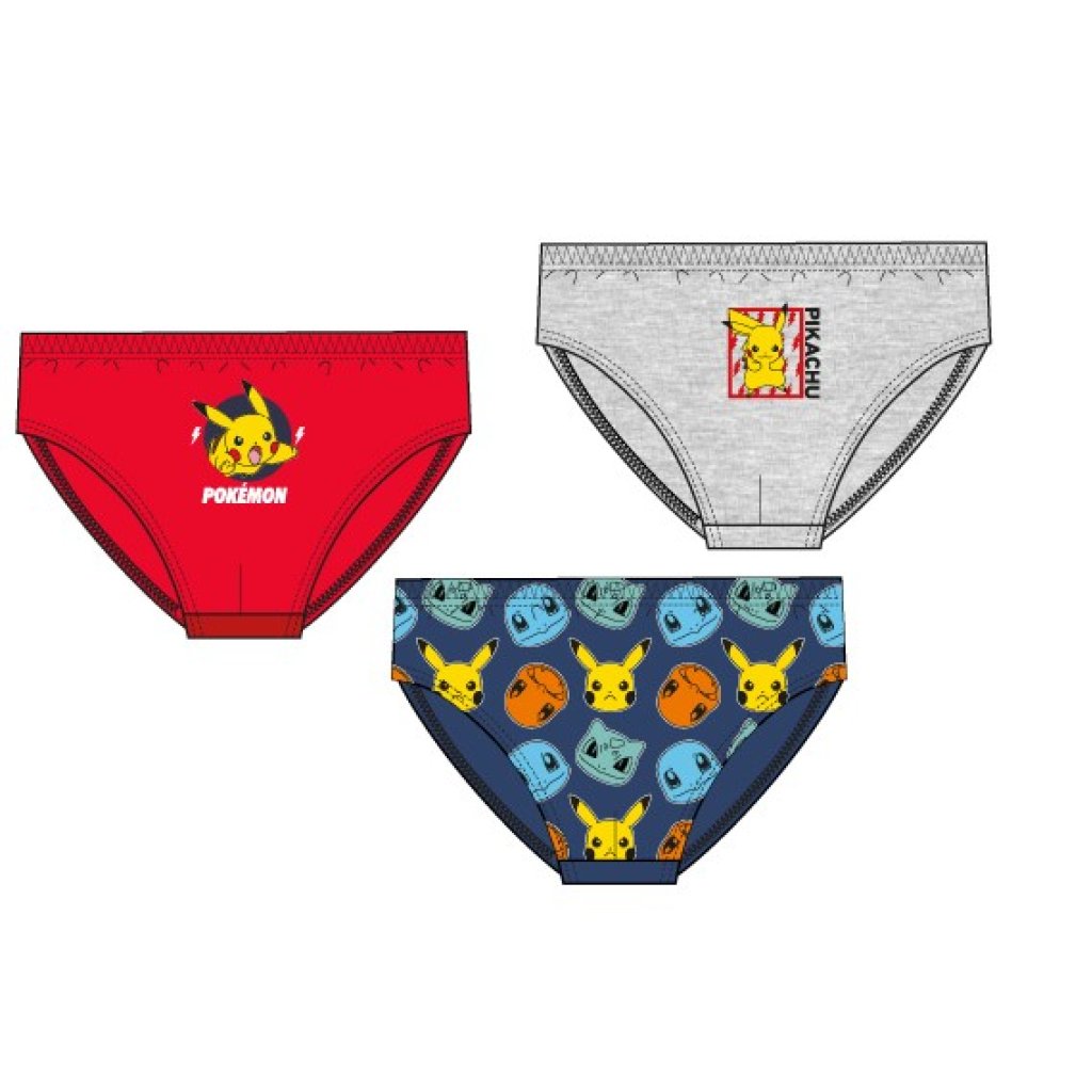 El pack incluye 3 slips de Pokemón , con la elasticidad suficiente para ofrecer libertad de movimiento y comodidad en el día a día . En la caja encontraras 3 diseños diferentes y divertidos.