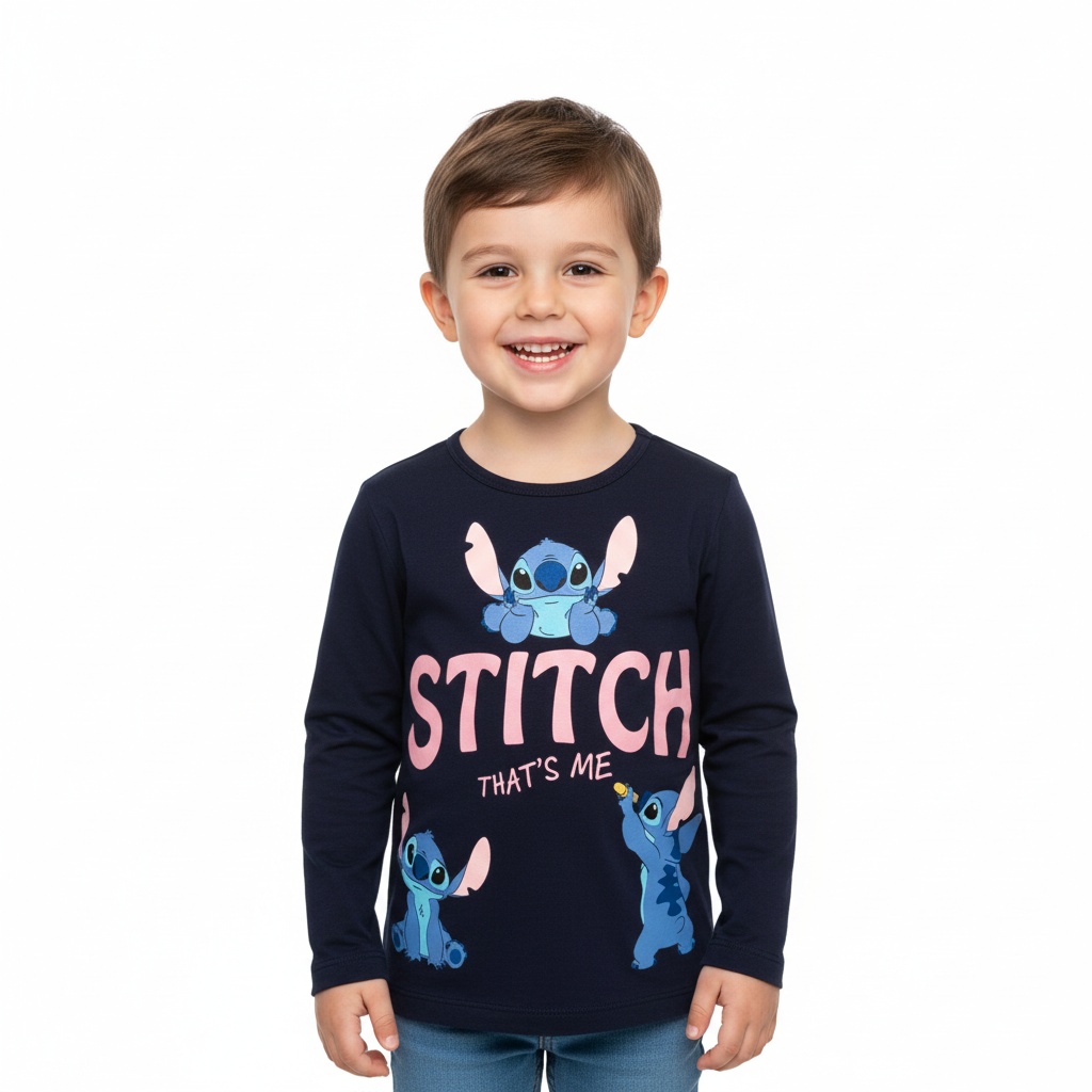 Camiseta de manga larga de la colección Lilo & Stitch, color azul marino. Tallas de la 3 a la 8.
