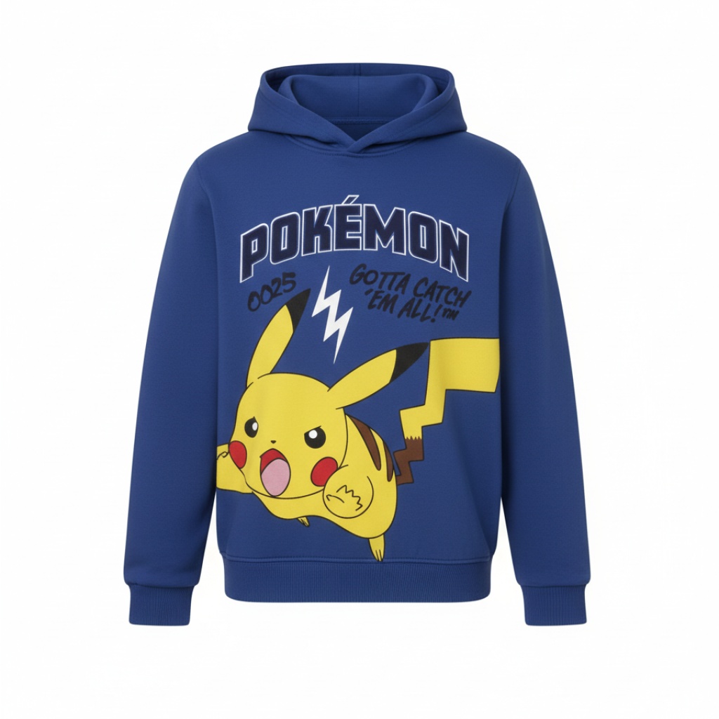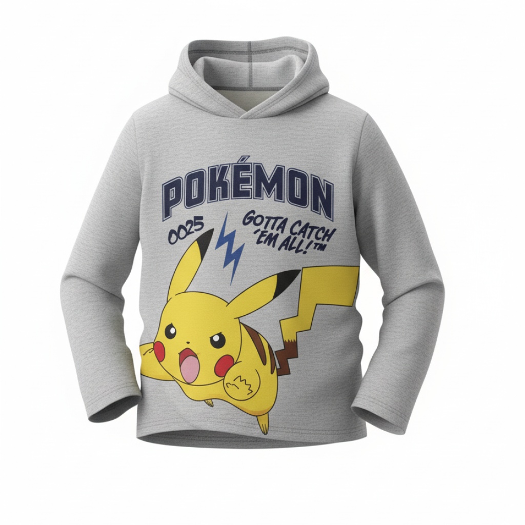 La camiseta manga larga Pokemon con capucha con material 100% algodón se presenta con un diseño funcional que combina calidad y practicidad, elige la versión que más te guste, disponible en dos colores, gris y azul.