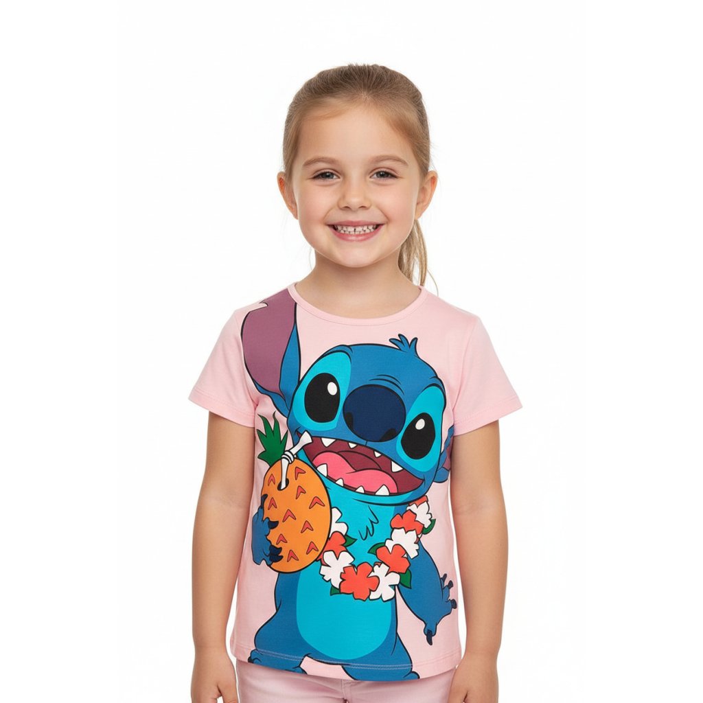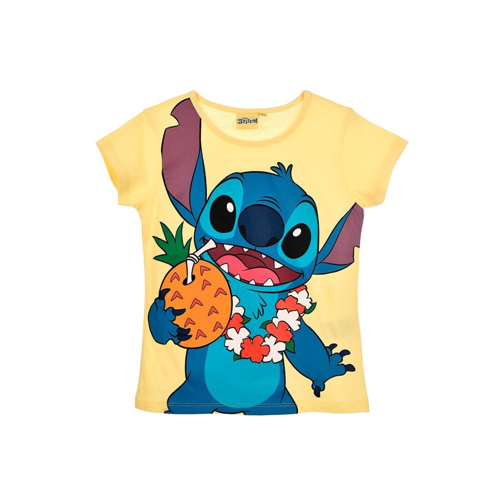 Camiseta de manga corta de la colección Lilo&Stitch confeccionada 100% algodón para máxima comodidad. Disponible en dos colores, amarillo y rosa. Tallas de la 3 a la 8.