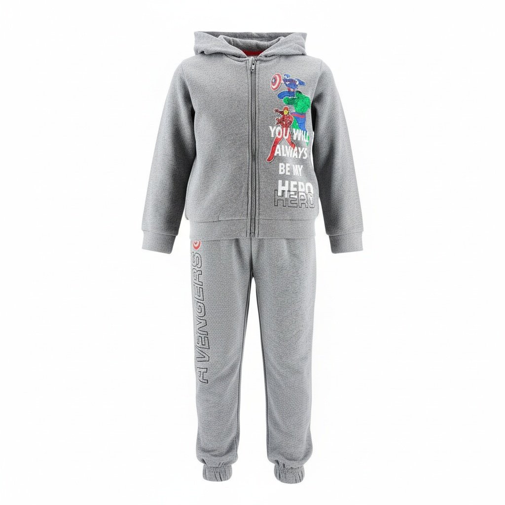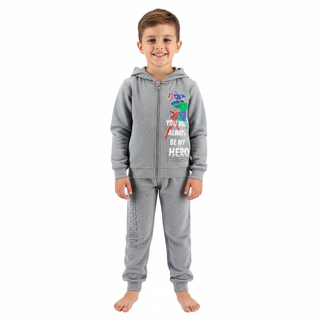 Chandal capucha Avengers Hero es el conjunto perfecto para que los pequeños superhéroes disfruten de cada día con estilo y comodidad. Este vibrante y funcional chandal combina la pasión por los icónicos personajes de Marvel con un diseño práctico, ideal tanto para el juego como para el relax. Confeccionado con materiales suaves y resistentes, este chandal capucha avengers hero destaca por su sudadera en color gris, adornada con un impresionante estampado de Capitán América, Hulk y Iron Man, acompañados del inspirador mensaje «YOU WILL ALWAYS BE MY HERO». Los pantalones a juego, también en gris, complementan el look con el logo vertical de Avengers en la pierna. Es un chandal esencial para cualquier fan de los Avengers, ofreciendo la máxima confortabilidad gracias a su tejido. Este conjunto con capucha garantiza que tu hijo se sienta protegido y listo para cualquier aventura, convirtiéndose en su atuendo favorito.