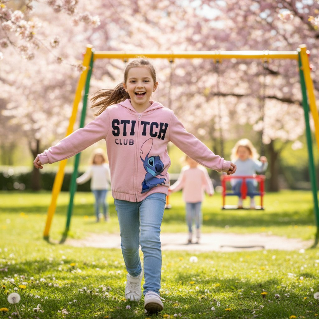 Chaqueta de chándal de la colección Lilo & Stitch, disponible en dos colores, azul marino y rosa. Tallas 3 a 8 años.