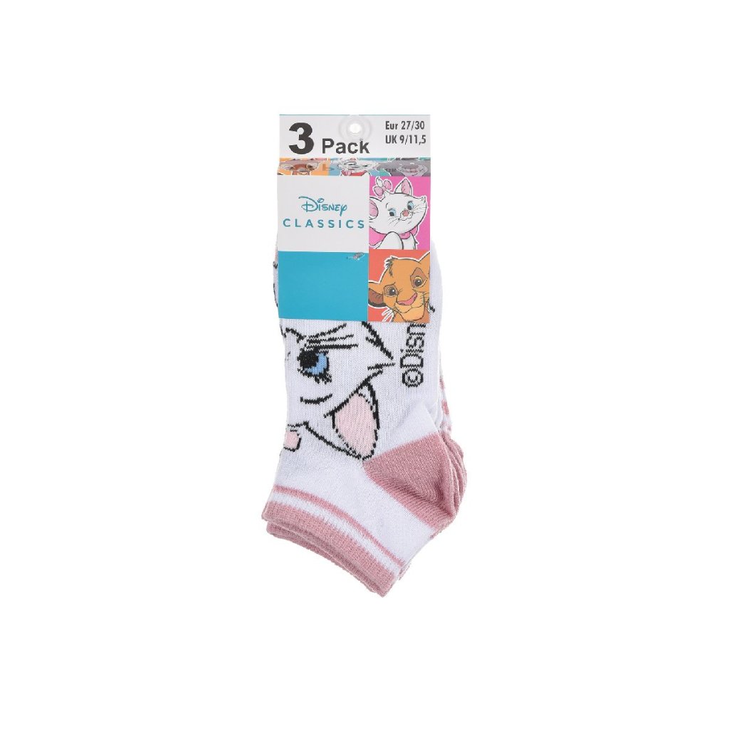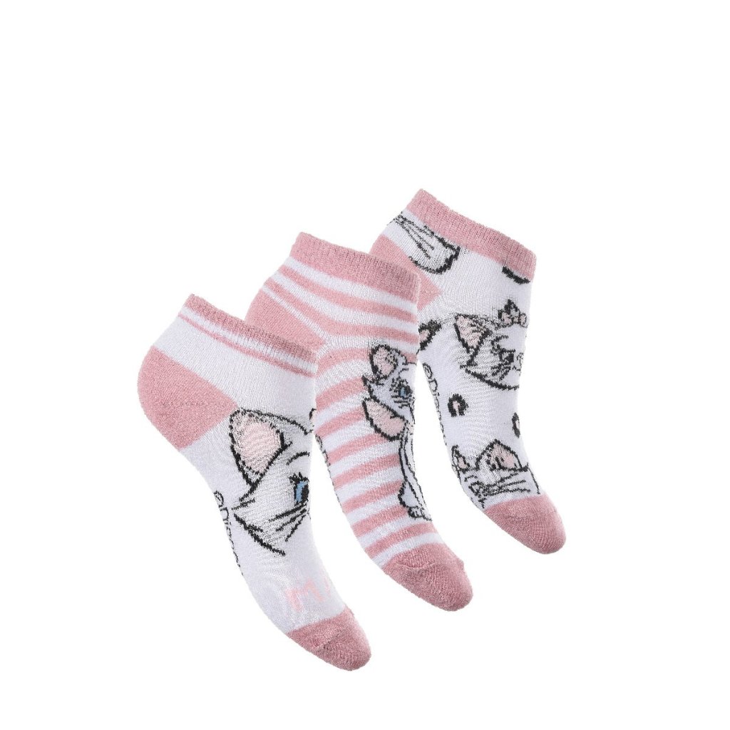 • Diseños exclusivos: Incluye tres pares de calcetines con estampados únicos de Marie de Los Aristogatos, con detalles en rosa y blanco.