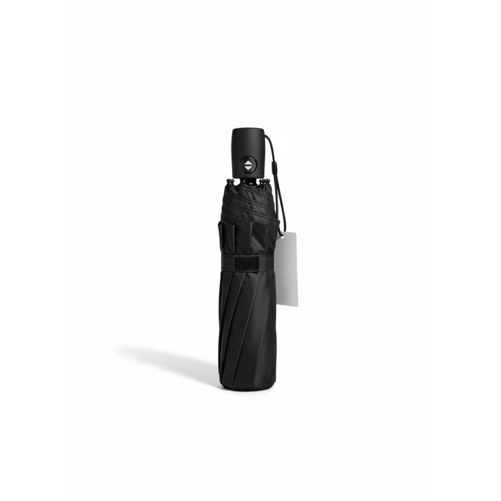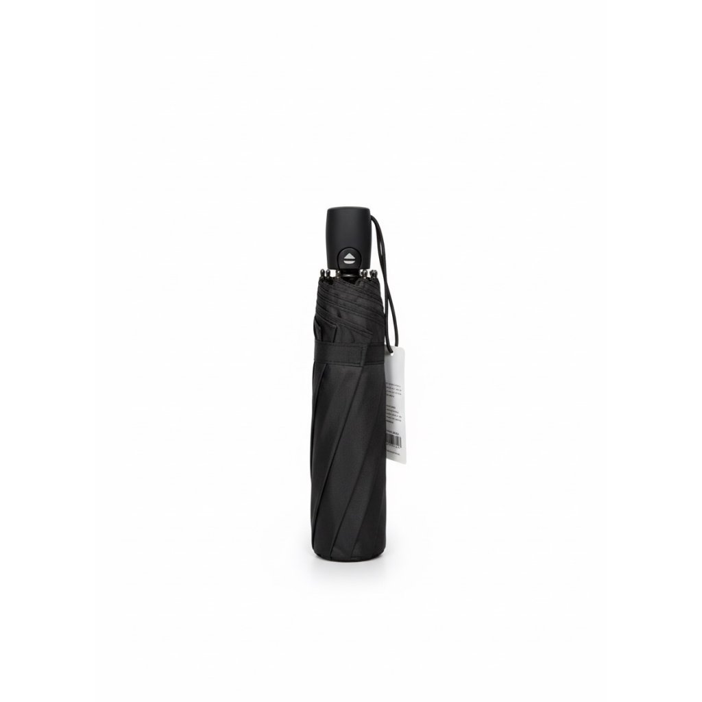 Paraguas de color negro con estampado liso y mecanismo de apertura automático. Funda a juego y tamaño pequeño para transportar fácilmente.
