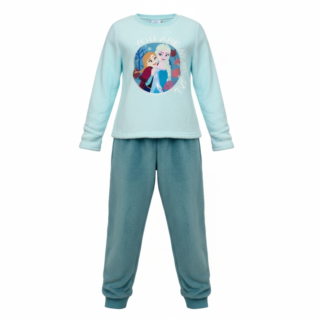 Pijama manga larga Frozen es la elección perfecta para mantener a las pequeñas aventureras abrigadas y cómodas durante las noches de invierno. Este encantador pijama manga larga Frozen de manga larga está diseñado para ofrecer una calidez excepcional gracias a su tejido de coralina ultra suave al tacto. Inspirado en el mágico mundo de Frozen, presenta un vibrante estampado de Elsa y Anna en la parte superior, que transportará a tu hija directamente a Arendelle. El conjunto completo, que incluye la camiseta de manga larga y los pantalones a juego, garantiza que tu pequeña disfrute de un descanso reparador y lleno de sueños mágicos. Optar por este pijama lago Frozen significa elegir calidad, confort y la alegría de sus personajes favoritos para cada noche.Confeccionado en tejido de coralina 100% poliéster para máxima suavidad y retención de calor.