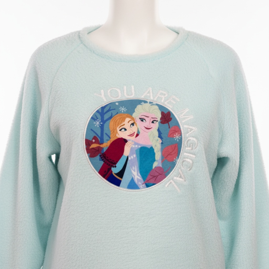 • Estampado frontal de alta calidad con personajes de Frozen (Elsa y Anna), resistente a los lavados.