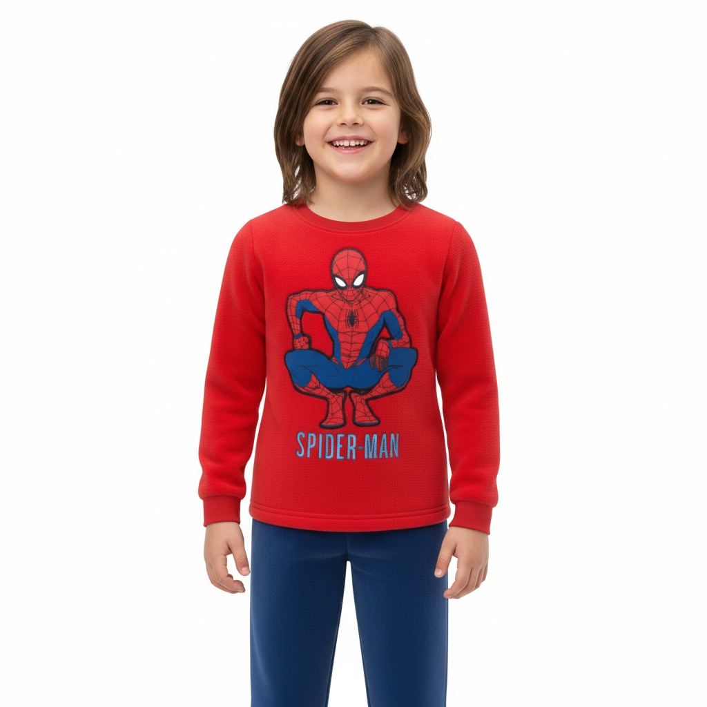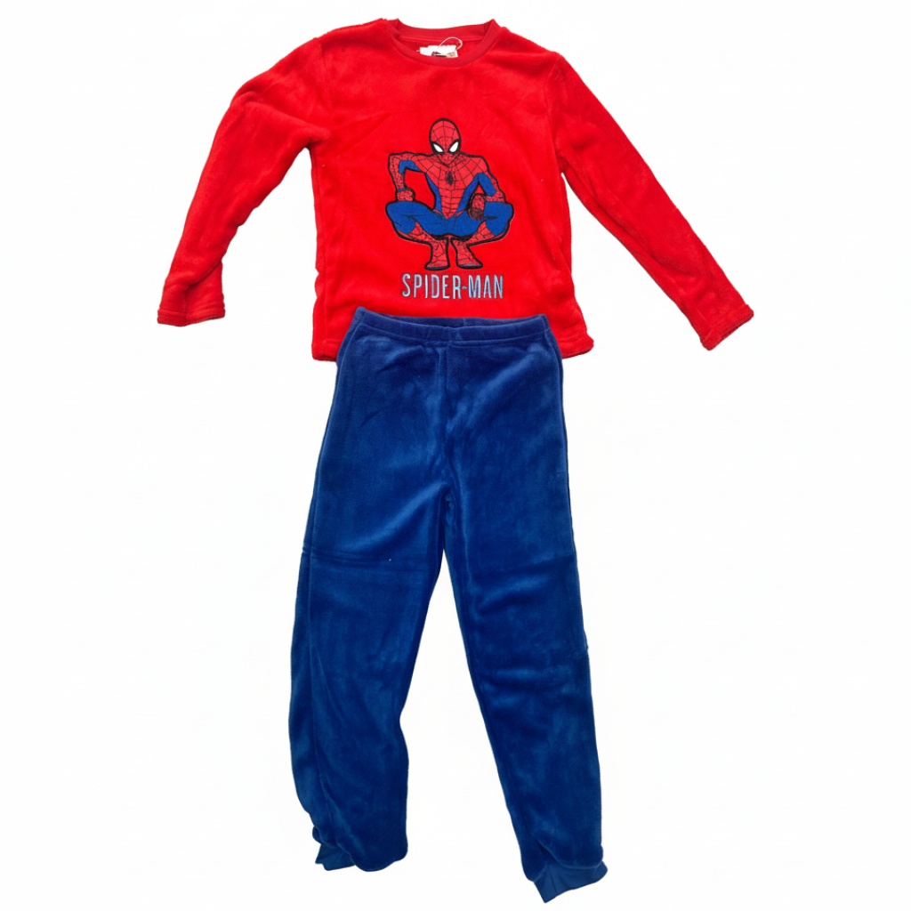 Pijama largo Spiderman es la elección perfecta para que los pequeños héroes disfruten de noches cálidas y llenas de aventuras durante el invierno. Este acogedor pijama de manga larga presenta una camiseta de color rojo vibrante con un impresionante diseño de Spider-man en su icónica pose, acompañado del texto «SPIDER-MAN» en la parte frontal. Confeccionado en suave tejido de coralina, garantiza la máxima comodidad y un tacto agradable para combatir el frío. La parte inferior se compone de un pantalón azul liso, también de coralina, que complementa a la perfección la camiseta y ofrece una calidez superior. Este pijama largo Spiderman es ideal para los fans del trepamuros, asegurando dulces sueños y mañanas llenas de energía. Su diseño y materiales lo hacen indispensable para la temporada de invierno.