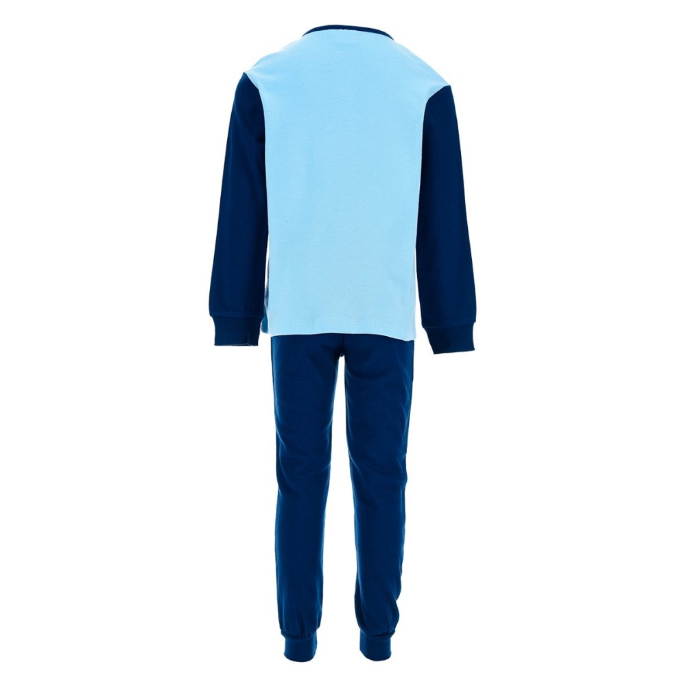 Este pijama largo interlock Bluey prepara a los más pequeños para dulces sueños. Ideal para las noches frías de invierno, este conjunto de dos piezas garantiza comodidad y calidez. La parte superior de manga larga presenta un vibrante estampado de Bluey con el mensaje «Bed Time» y detalles de estrellas, además de un práctico cuello estilo Henley con botones. El pantalón largo, a juego en tonos de azul, cuenta con una cintura elástica para un ajuste perfecto y puños acanalados que mantienen el calor. Fabricado con un tejido suave al tacto, este pijama largo interlock Bluey es la elección perfecta para que tus hijos disfruten de sus momentos de relax y se sumerjan en aventuras oníricas junto a su personaje favorito.