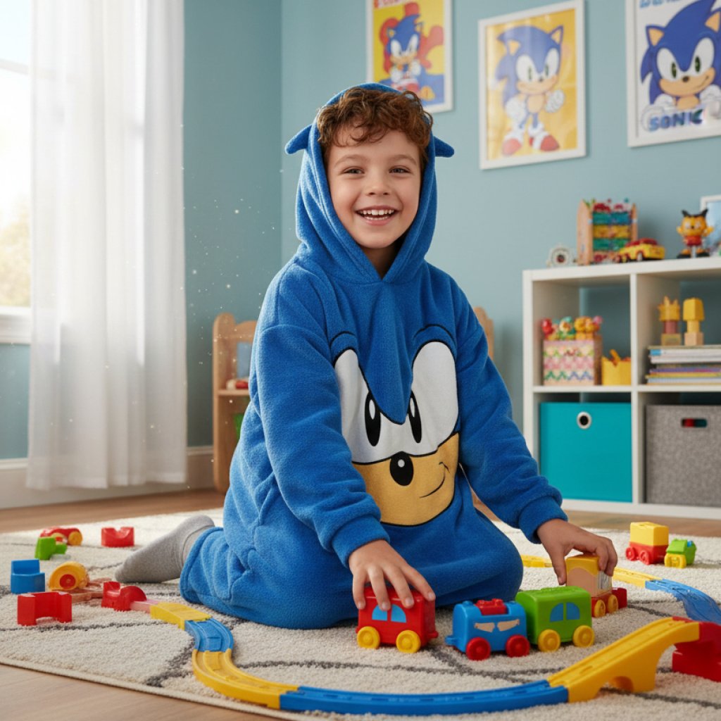 Poncho noche Sonic ideal para los fans del erizo más rápido del mundo, este poncho te envolverá en una suavidad inigualable. Confeccionado en un lujoso tejido de coralina, es perfecto para mantenerte abrigado y acogedor durante las noches de juego o relajación. Su vibrante color azul captura la esencia de Sonic, mientras que la capucha, diseñada con las características orejas y púas del personaje, añade un toque divertido y auténtico. Este poncho noche Sonic no es solo una prenda, es una declaración de estilo y confort para cualquier aventura, ya sea en casa o en una convención. Un must-have para cualquier seguidor de Sonic que busque calidez y diversión.