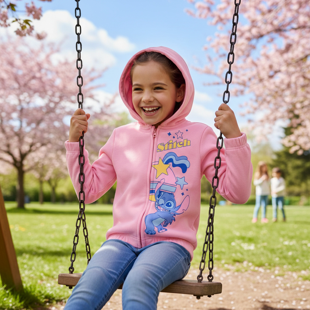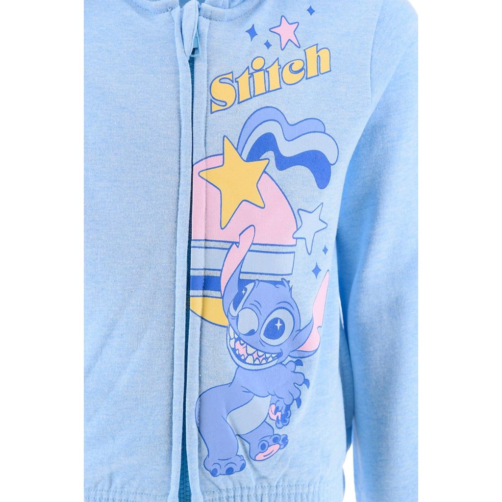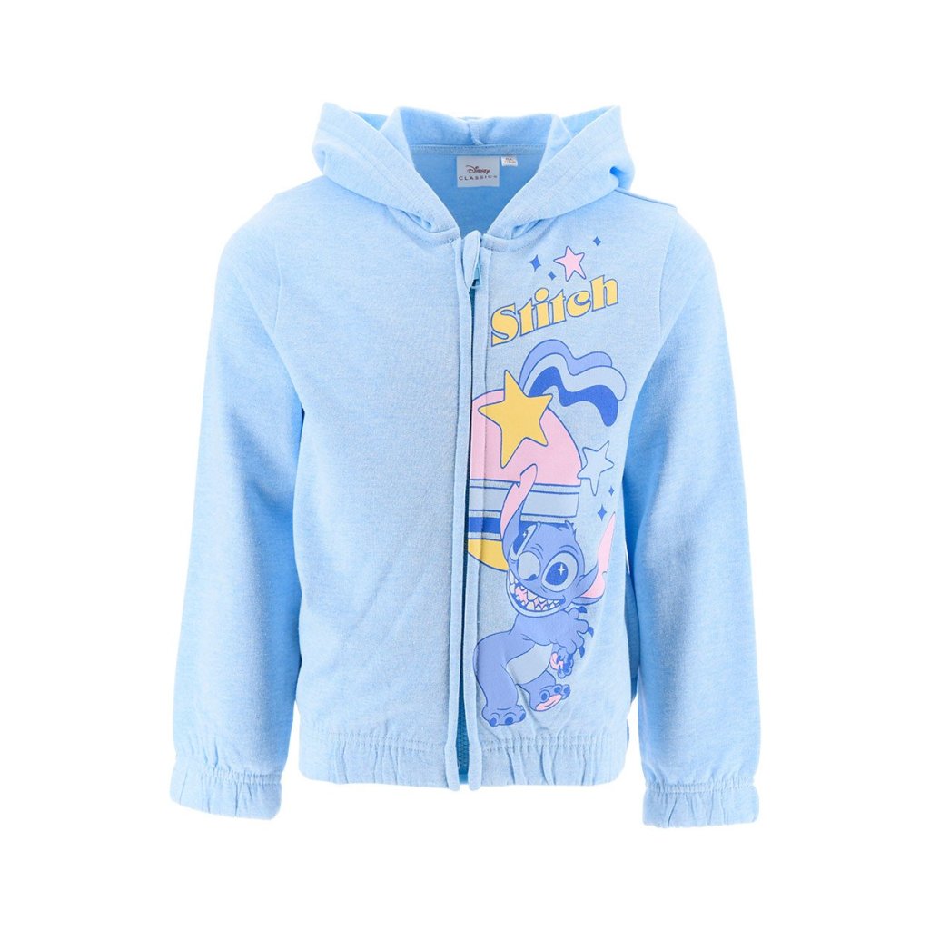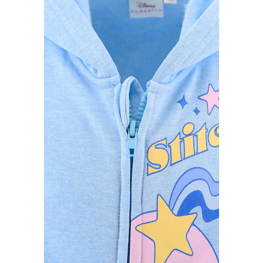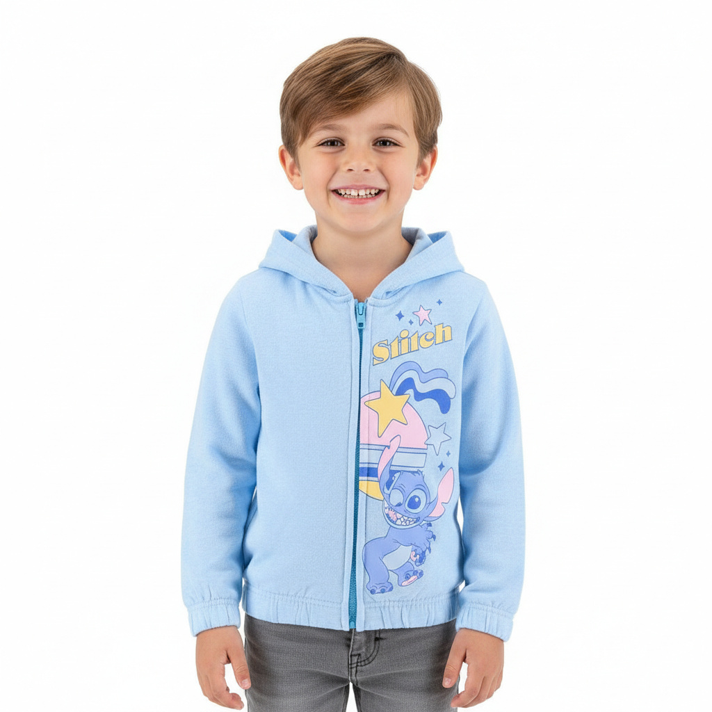 Sudadera capucha cremallera Lilo & Stitch, disponible en dos bonitos colores, azul claro y rosa. Tallas desde los 3 a los 9 años.