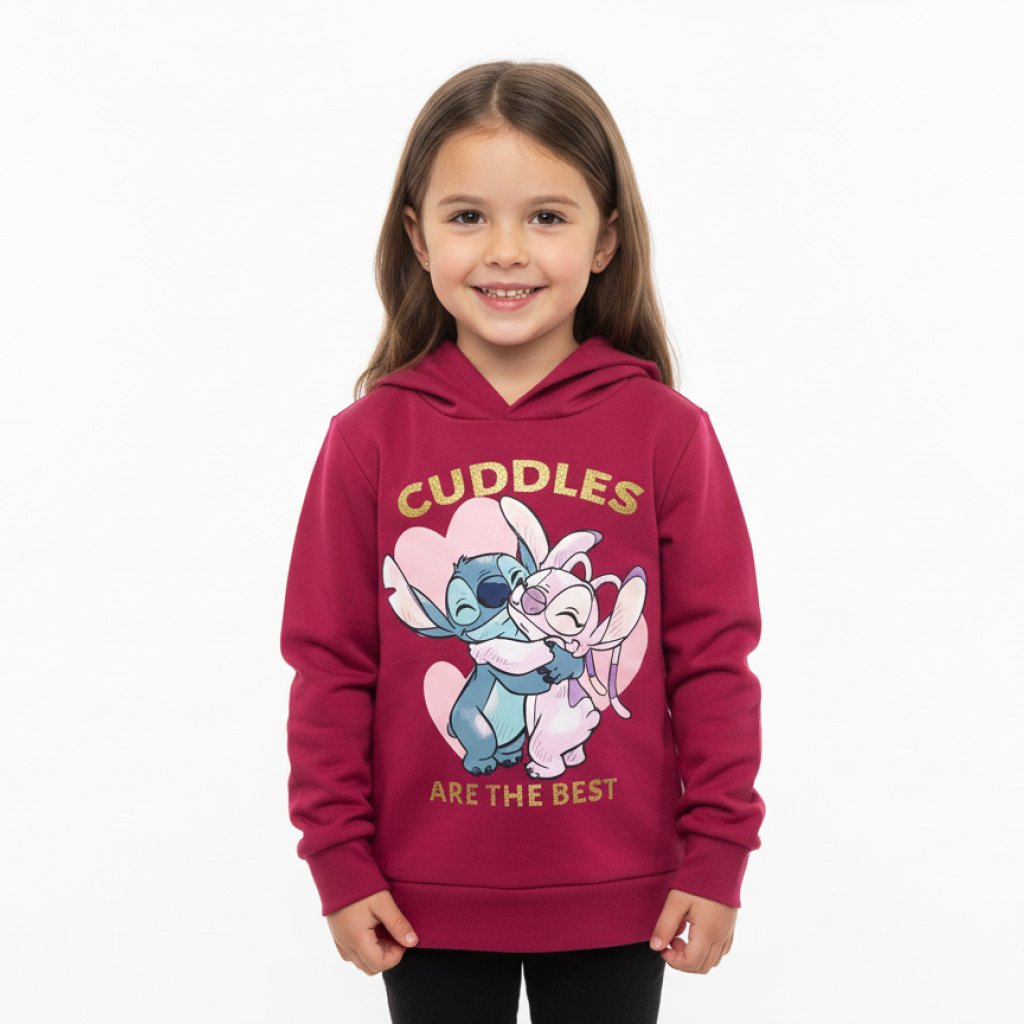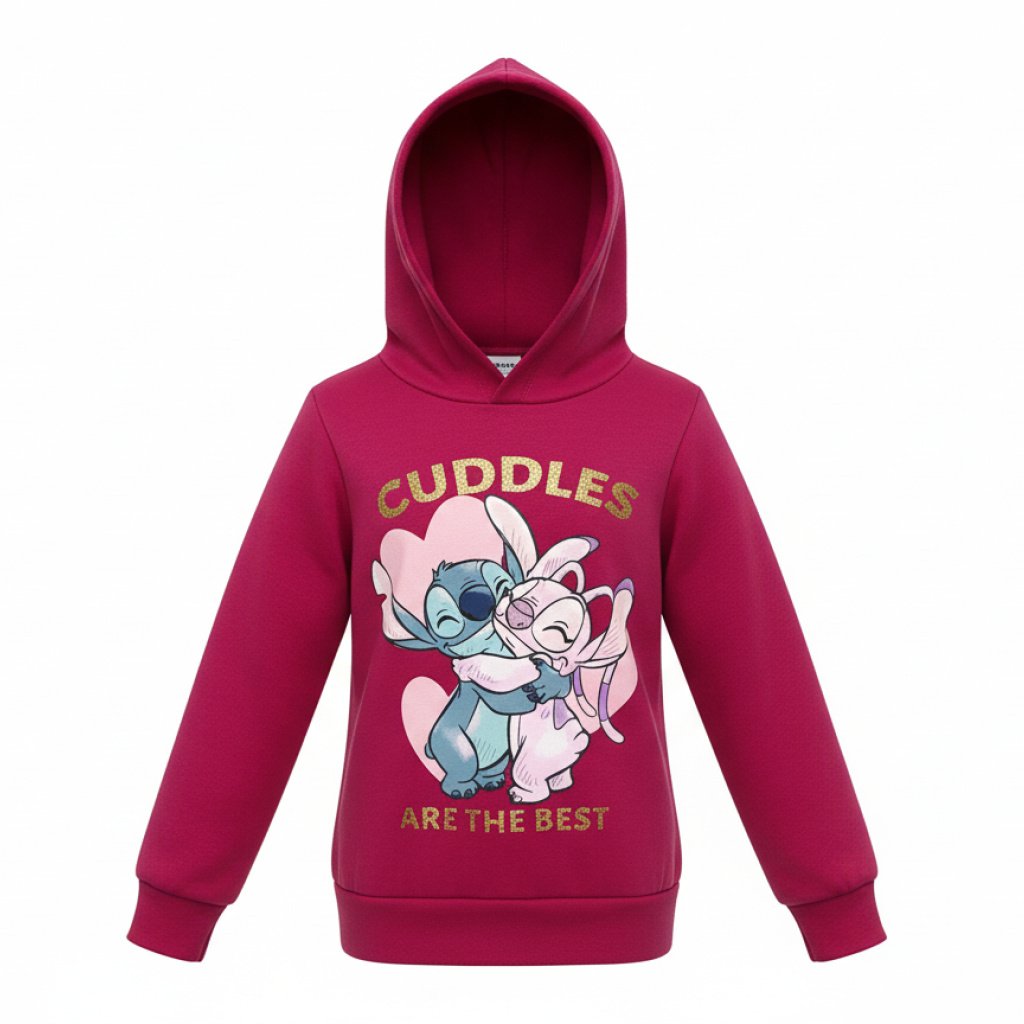 SUDADERA CAPUCHA STITCH es la prenda ideal para los amantes del adorable personaje de Disney, perfecta para añadir un toque de magia y calidez a tu armario. Esta cómoda y estilosa sudadera con capucha, disponible en vibrantes tonos rosa y melocotón, presenta un encantador diseño de Stitch abrazando a Angel con el mensaje «Cuddles Are The Best», realzado con detalles de purpurina que le dan un brillo especial. Diseñada para ser una pieza clave en tu ROPA INVIERNO, esta sudadera capucha stitch combina a la perfección funcionalidad y moda. Es una de esas SUDADERAS imprescindibles que te mantendrán abrigado y a la moda, ideal para cualquier fan de Stitch que busque confort sin renunciar al estilo. Su tejido suave te garantiza una experiencia de uso inigualable durante los días más fríos.