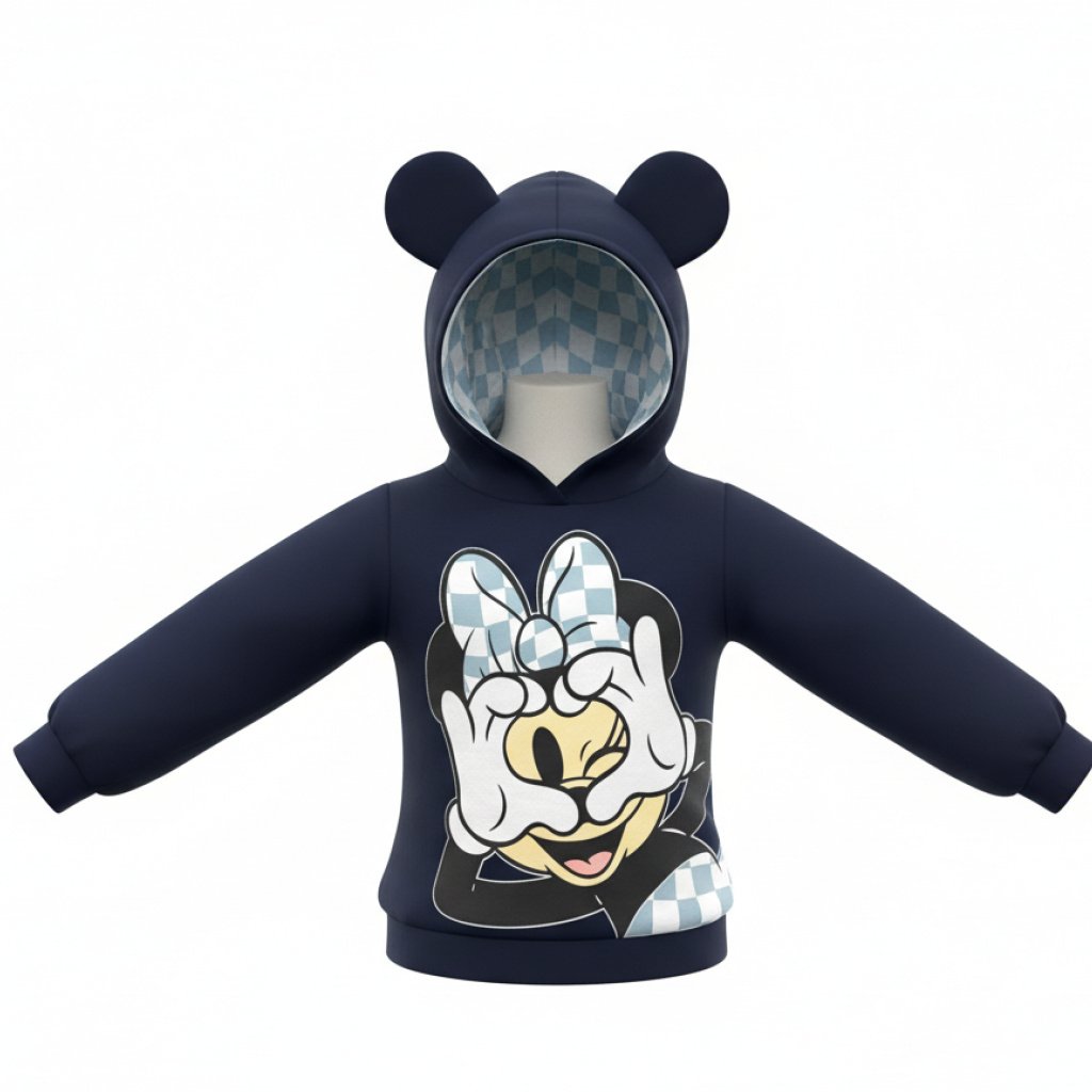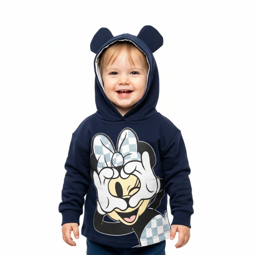 Sudadera infantil de Minnie Mouse disponible en color azul marino desde la talla 3 a la talla 8. Esta sudadera con capucha es una prenda cómoda y versátil, pensada para el día a día.