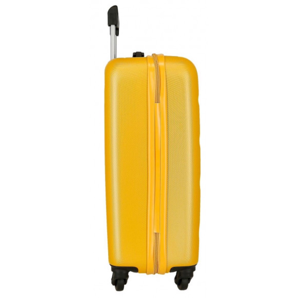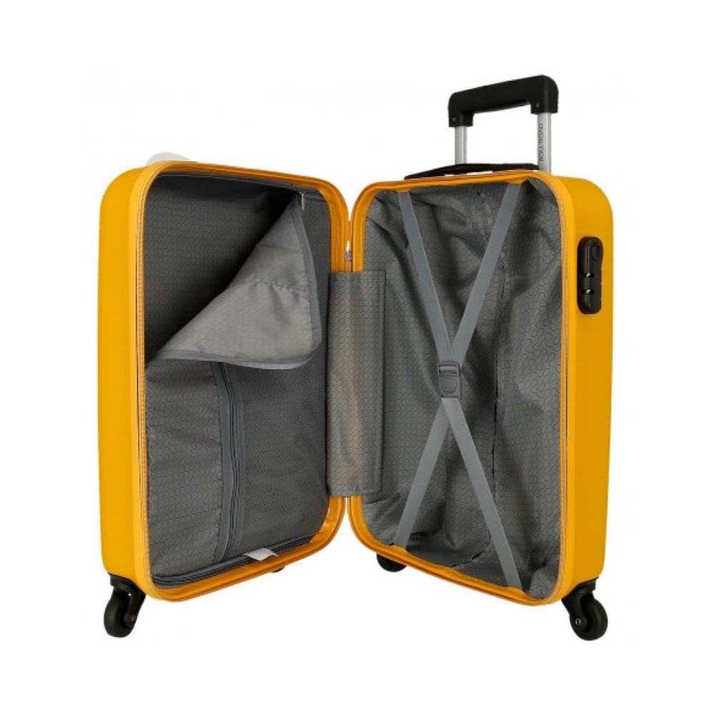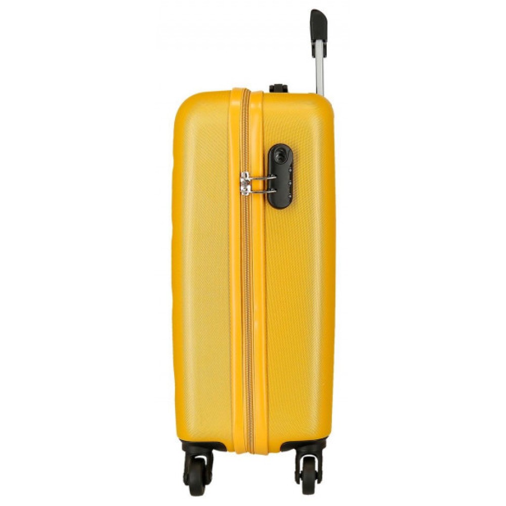 TROLLEY 55CM AMARILLO es la compañera de viaje ideal para quienes buscan combinar estilo, funcionalidad y durabilidad en un mismo producto. Esta maleta compacta está específicamente diseñada para cumplir con las normativas de equipaje de mano de la mayoría de las aerolíneas, permitiéndote viajar con todo lo esencial sin la necesidad de facturar. Su vibrante color ocre no solo le confiere un toque distintivo y moderno, sino que también facilita su identificación en cualquier cinta de equipajes. Fabricado con materiales de alta resistencia, este trolley 55cm amarillo garantiza la máxima protección para tus pertenencias. Es la elección perfecta para escapadas de fin de semana, viajes de negocios cortos o como una adición elegante a tu colección de maletas. la trolley en tono ocre te asegura un desplazamiento cómodo y con personalidad.
